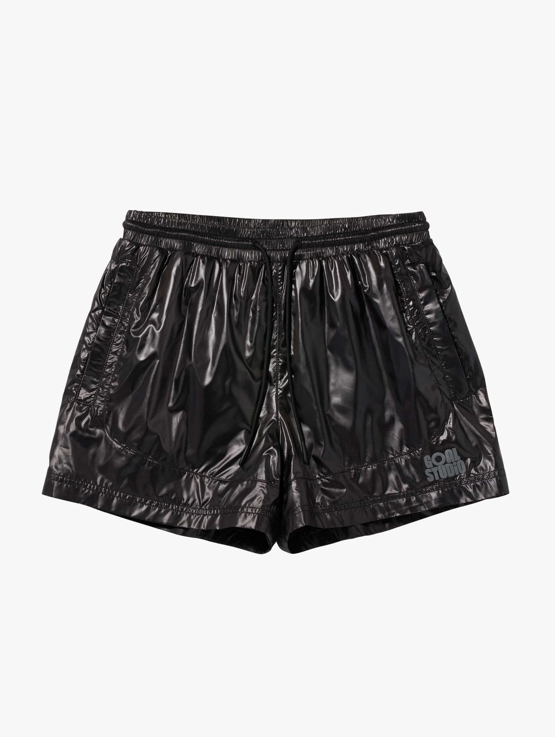 GLOSSY MESH LINED SHORTS-BLACK